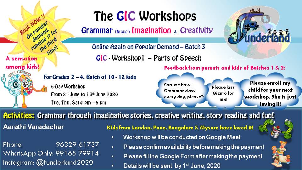 The GIC Workshops are a series of online workshops that aim to teach children Grammar through Imagination and Creativity.